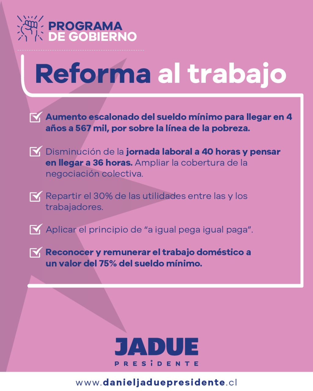 Comando ciudadano para todas y todos quienes quieran transformar nuestro. Conoce el plan de gobierno y la propustas del estado plurinacional de Jadue wwwdanieljaduepresidentecl El programa de Jadue incluye reformas al trabajo pensiones y tributaria. Camino a las primarias presidenciales.
